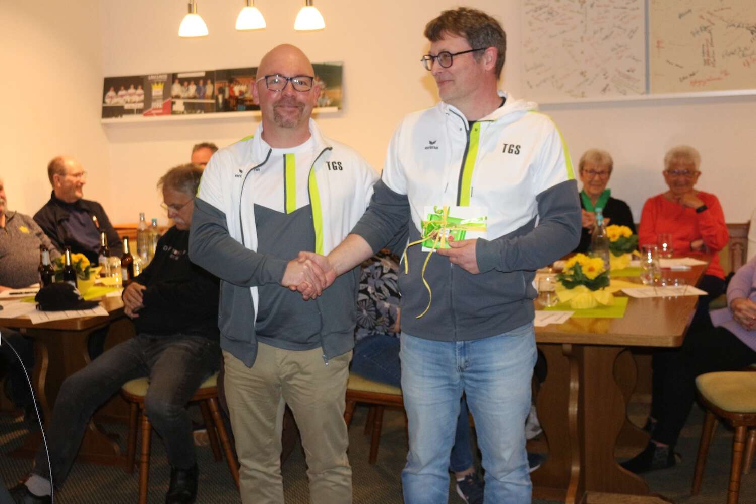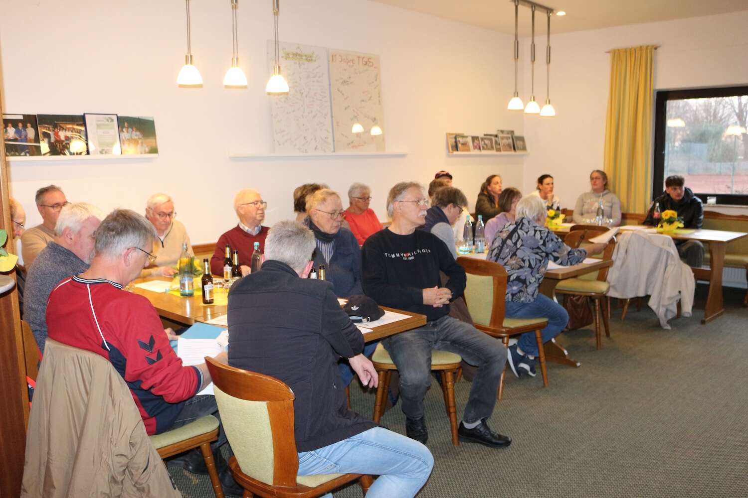 an unserer diesjährigen Mitgliederversammlung nahmen 25 TGS‘ler teil und verfolgten interessiert die Berichte des Vorstandes. Andreas teilte mit, dass wir 18 neue Mitglieder im Rahmen des Willkommensangebotes bei der Saisoneröffnung 2025 gewinnen und auch halten konnten. Darüber freuen wir uns sehr. Christina blickte auf ein belebtes sportliches Treiben zurück und präsentierte eine Fotogalerie der erfolgreichen Saisoneröffnung, der Turniere unter dem Motto French Open und Wimbledon all in white sowie das Doppelturnier zum Abschluss. Unsere Jugend war immer mit eingebunden und mit Freude dabei. Auch bei unserem stimmungsvollen Oktoberfest waren sie mit von der Partie und haben fleißig geholfen. Bereits in 2026 haben wir gemeinsam mit dem TSV ein spannendes Dartsturnier angeboten. Auch fleißig unterwegs sind neben dem Boulespiel unsere Boulefrauen und unsere Radfahrer. Schön, dass die meisten ehemaligen Aktiven in dieser Form unserer TGS treu bleiben!