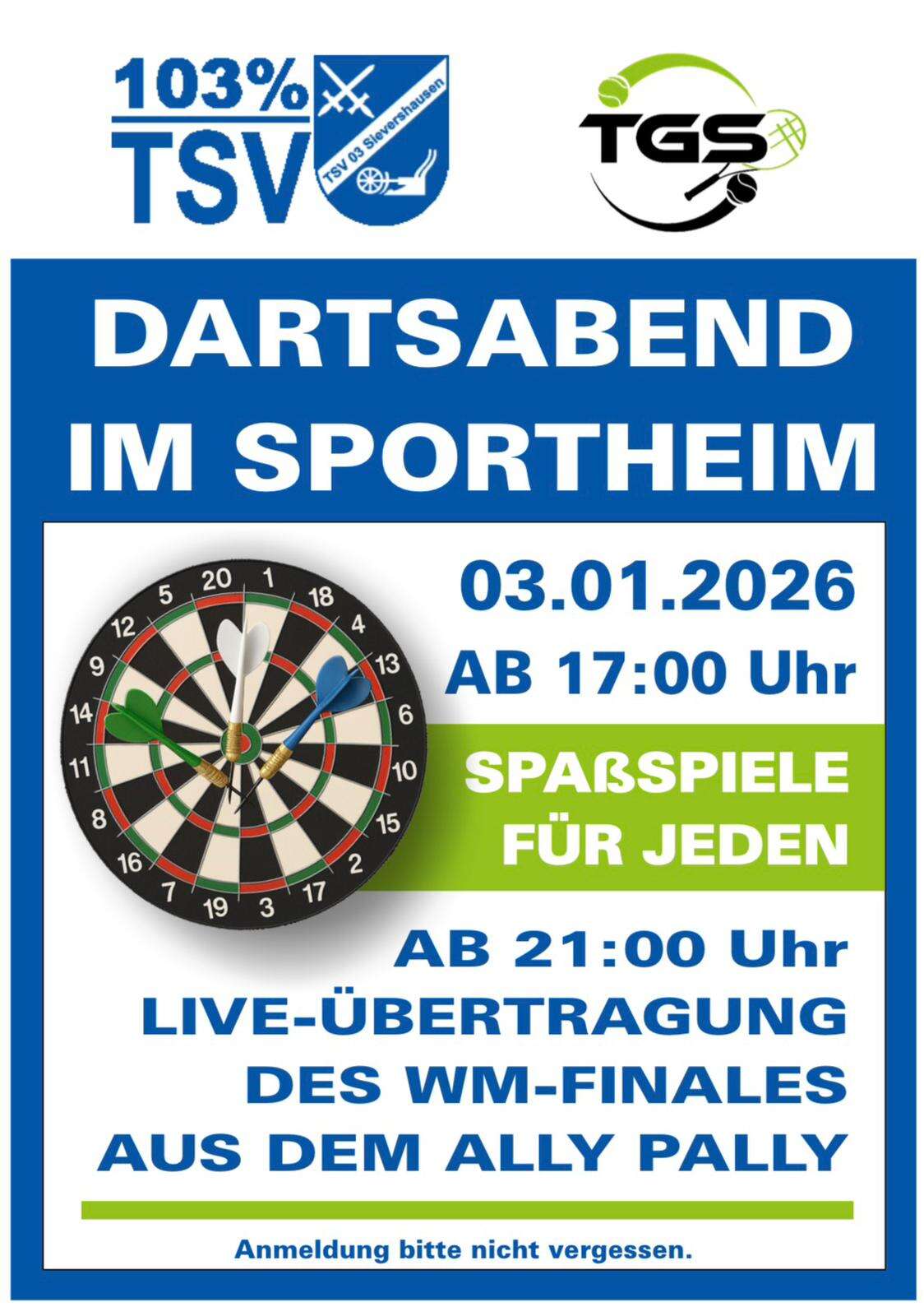Die Austragung der 3. Dart Meisterschaft in Sievershausen war unter der Leitung von unserem 1. Vorsitzenden Andreas Türschmann wieder ein tolles Ereignis zum sportlichen Jahresbeginn der TGS.