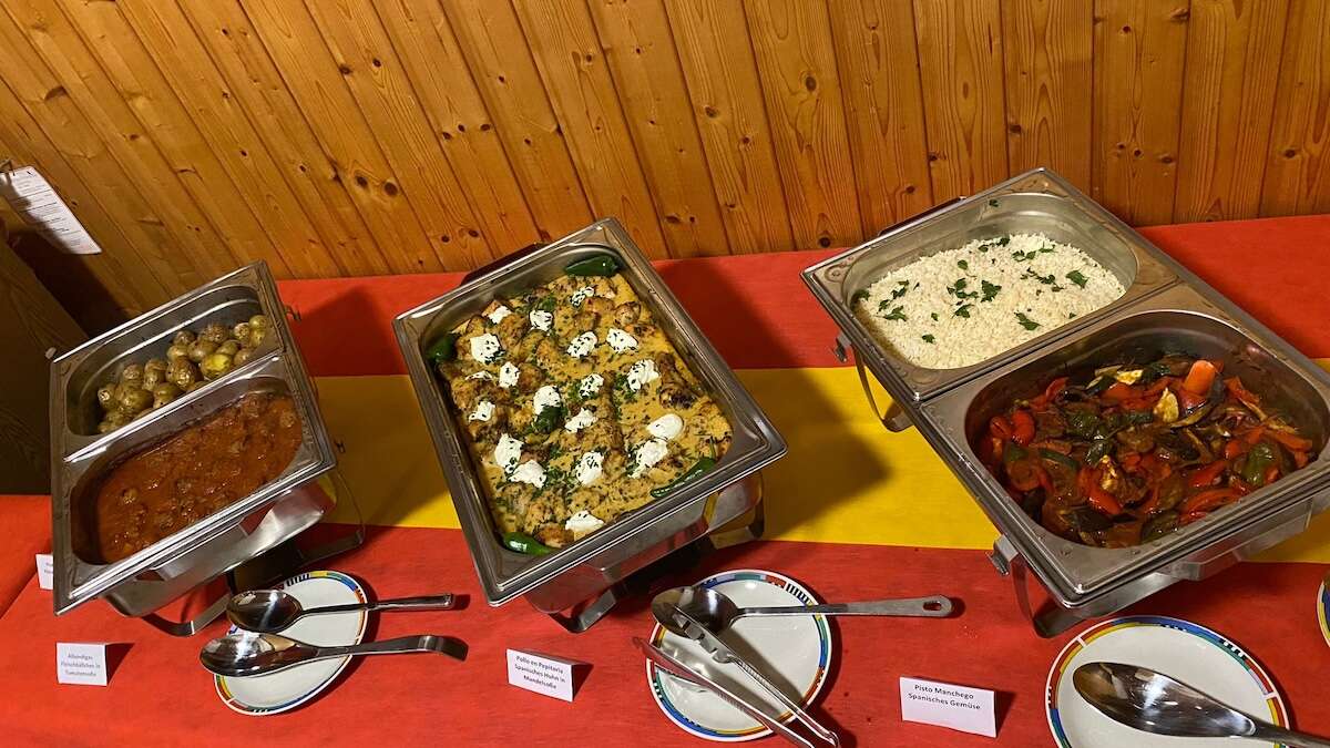 Im liebevoll, mit den Farben Spaniens, dekorierten Tennisheim wurden die Gäste zur Saisonabschlussfeier von unserem 1. Vorsitzenden Andreas Türschmann begrüßt. Zur Einstimmung wurde zunächst eine leckere Sangria, zubereitet von Sabine Adler nach original mallorquinischem Rezept, gereicht. Unter den Klängen spanischer Musik ließen sich unsere TGS´ler das Getränk schmecken. Die feurige Lebensfreude Spaniens spürte man dann förmlich beim Genuss der kulinarischen Spezialitäten. Markus Prilopp hatte mit seinem exquisiten spanischen 3-Gänge-Menü eine mediterrane Atmosphäre in den Abend gezaubert. Die perfekte Kombination mit Vorspeisen wie Gambas al Ajillo (Knoblauchgarnelen), Patatas Bravas (kleine gebackene Kartoffeln) und Empanadillas (kleine gefüllte Teigtaschen), den Hauptgerichten Albondigas (Fleischbällchen in pikanter Tomatensoße) und Pollo en Pepitoria (Huhn in Mandelsoße) sowie dem süßen Abschlussdessert Tarte Catalana und Joghurt mit Honig und karamellisierten Nüssen weckten die Gaumenfreuden. „War das lecker …“, dieser Satz war oft zu hören. Bei spanischem Bier und spanischem Wein erfreuten sich alle Gäste in zahlreichen Gesprächen an dem entspannten und genussvollen Abend, der kulinarisch dann mit traditionellem Kuchen aus dem Land des Flamenco endete.