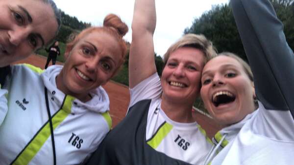 Genauso jubelte die Doppelpaarung Susanne und Tanja, die zusammen ein super Match hingelegt hatten. Auch hier leitete Susanne mit ihrer Erfahrung häufig den Punktgewinn im Spiel ein und Tanja freute sich über gelungene Schläge, da sie ja erst im zweiten Jahr dabei ist. Überraschend klar mit 6:1 gewannen die Beiden gegen die Dollbergerinnen Daniela Siegmund und Anna Meininger den ersten Satz. Im zweiten Satz wurde es nochmal spannend. Beim Spielstand von 4:4 zitterten die TGSler und behielten dann aber doch die Nerven und brachten den Satz mit 6:4 nach Hause.
